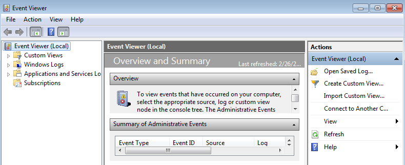 이벤트 뷰어를 살펴보자.