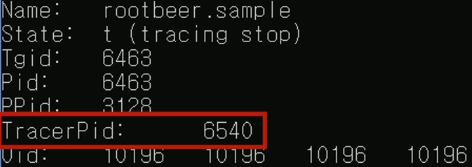 TracerPid값은 기본적으로 0이지만, 디버깅 중이라면 디버깅 프로세스의 PID 값이 된다.