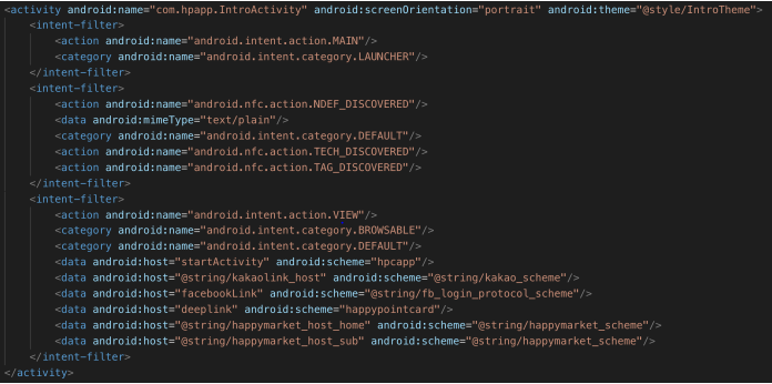 해당 취약점은 해피포인트 어플리케이션에서 발생했던 취약점으로, 딥 링크와 연관된 취약점이다.