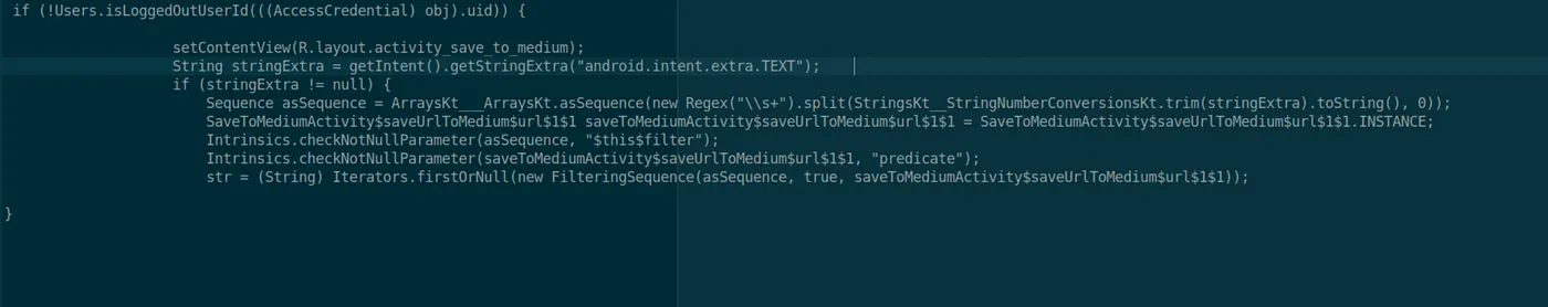 해당 취약점은 Medium 어플리케이션에서 Intent를 잘못 처리하고 있어 생긴 취약점이다.