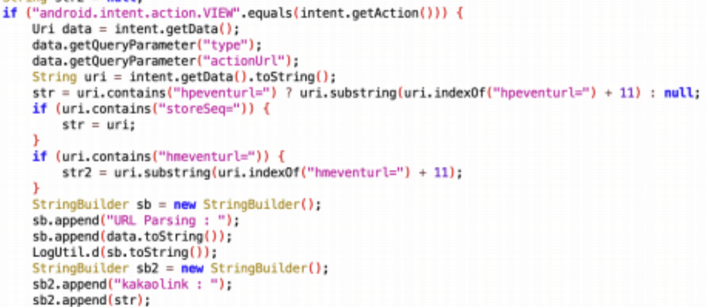해당 코드는 IntroActivity의 일부로, 확인해야할 부분은 hpeventurl= 이라는 부분이다.
