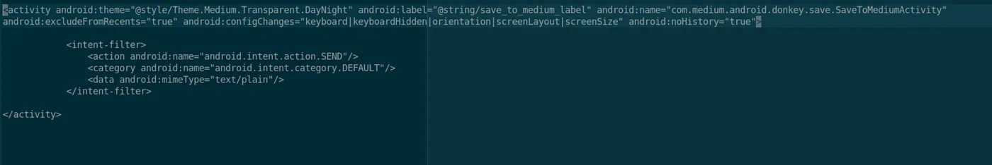 이는 Medium 어플리케이션이 설치된 모바일 기기의 모든 어플리케이션이 이 액티비티와 상호작용 가능하다는 의미다.