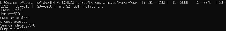 마지막 파일은 메모리 덤프를 할 때 사용한 프로그램으로, usb에 담겨져 프로그램이 실행된 것을 확인할 수 있다.