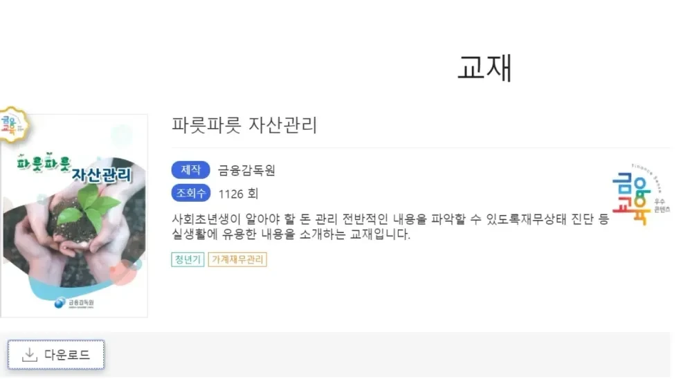 대학생을 위한 생활금융이 가장 어렵고 이 교재들은 연령대에 맞춰 쉽게 쓰여졌습니다.