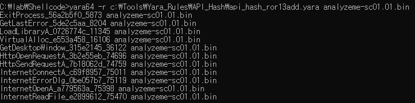쉘코드 API 해시 패턴매칭_YARA 룰셋 본문