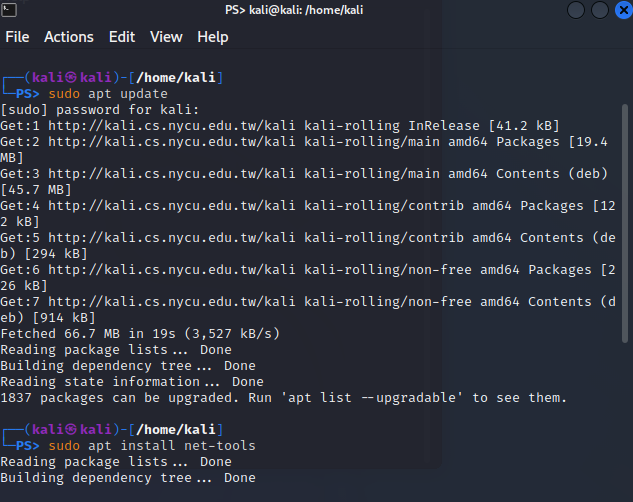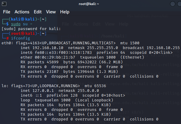 칼리 리눅스에 물려놓긴 했는데, 리눅스 내부에서 설정이 완료된 상태는 아니다.