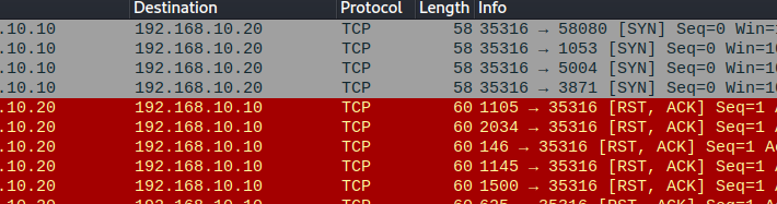 자세히 보면 포트 하나에서 포트 여러곳으로 SYN요청을 엄청나게 날리는 모습을 볼 수 있다.