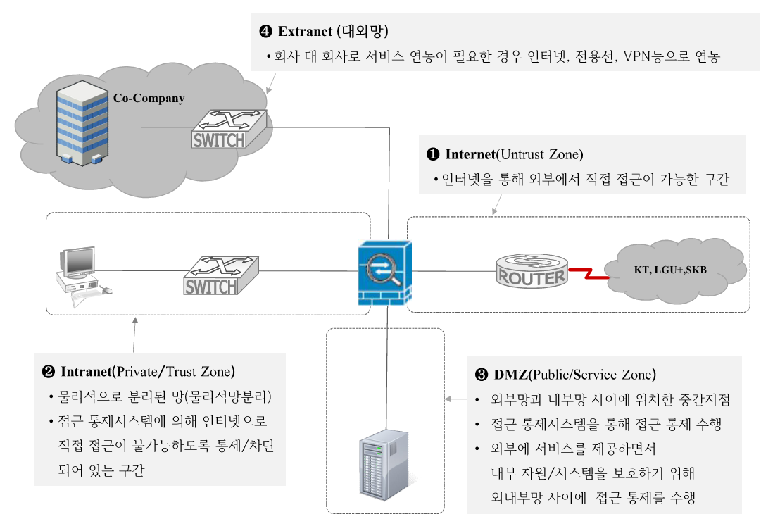 외부망과 내부망 사이에서 서비스/정보 등을 제공하는 DMZ,