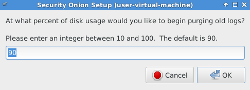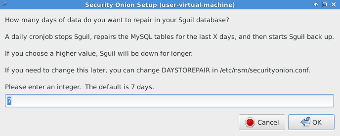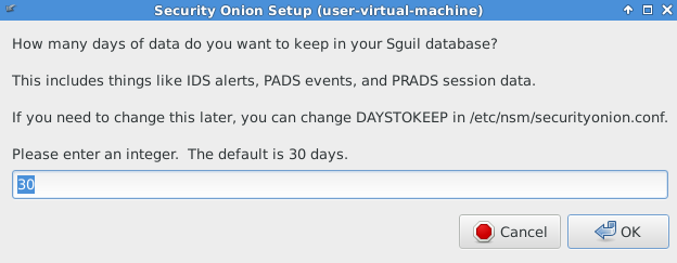 Sguil에 데이터를 얼마나 보관할 것인지 물어보는 창이다.