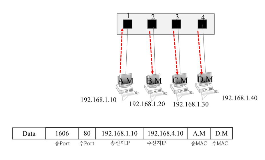 L3 스위치는 수신지의 IP 주소를 기반으로 Forwarding Port를 정해준다.