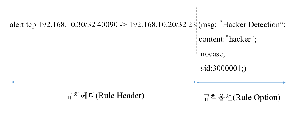 규칙 옵션은 규칙 헤더에 해당하는 패킷 중 특정 패턴(시그니처)을 정의해 놓은 영역으로,