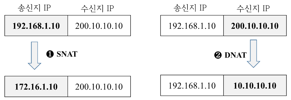 DNAT는 수신지의 IP를 바꾸는 것으로, 패킷이 공인망에서 사설망으로 들어올 시 실행된다.