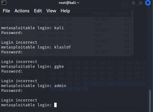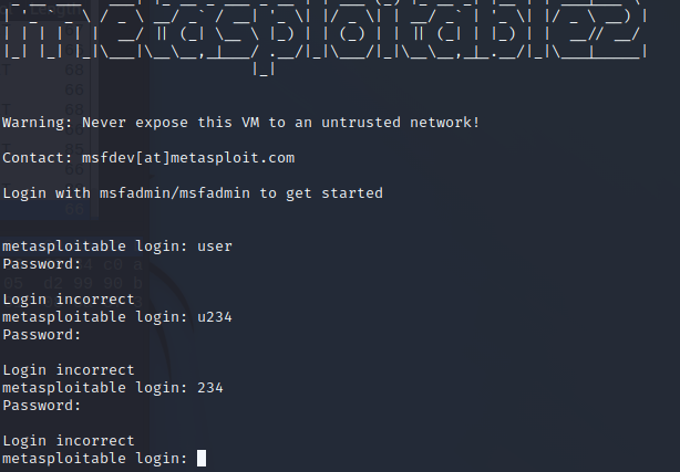 즉, Kali가 Meta에게 로그인을 실패하면, Meta가 Kali에게 "Login incorrect" 메시지를 전송한다.
