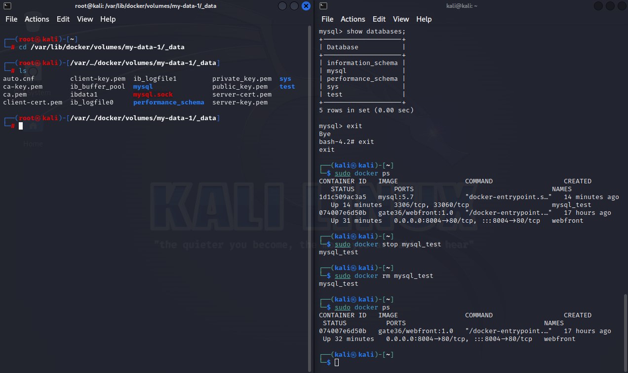 이 볼륨은 컨테이너가 삭제되어도 사라지지 않는 것을 확인할 수 있다.