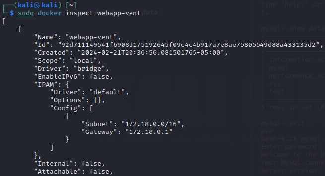 이후, 네트워크 구성을 보면, 172.18번대가 부여된 것을 볼 수 있다.