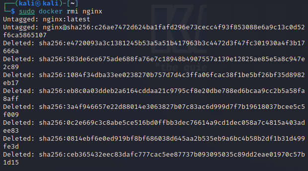 컨테이너를 전부 지운 이유는 nginx 이미지를 삭제하기 위함이다. nginx 이미지가 이미 컨테이너에서 사용중이므로, 컨테이너를 없애 이미지를 없애는 실습을 할 것이다.