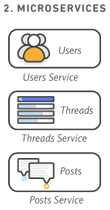 서비스와 애플리케이션이 모두 묶여있으므로, 서비스를 스케일링하려면 이 아키텍처를 전부 복사해야한다.