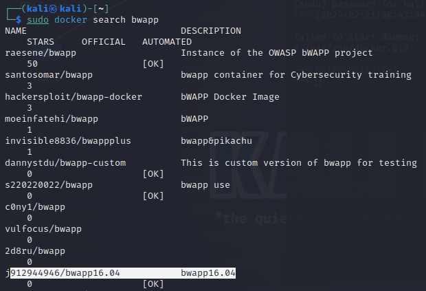 예전에 설치했던 bwapp을 다시 설치해보자. search 명령어로 bwapp을 찾고 설치할 것이다.