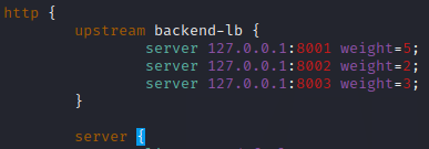 가중치 또한 설정할 수 있다. 각 서버마다 weight값을 주는 것으로 이를 구현한다.