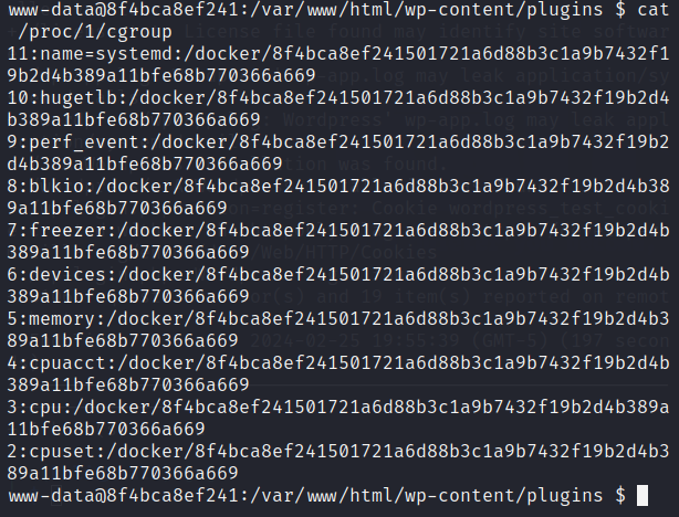 따라서 이 환경은 도커 환경임을 알 수 있고, 컨테이너 격리 공간이 존재하고 있는 것을 유추할 수 있다.