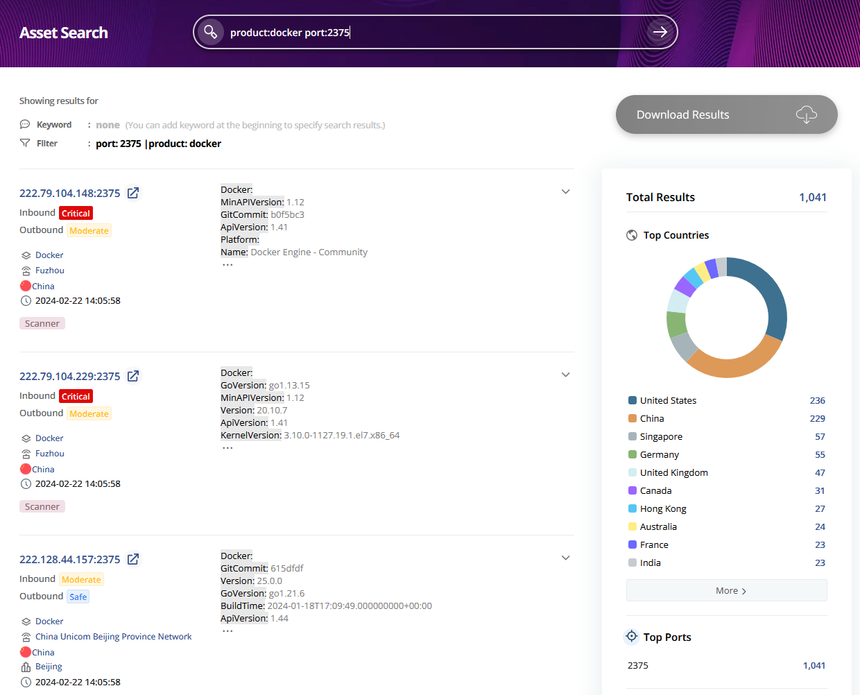 실제로 도커 서비스에서 2375 포트를 열어놓은 경우를 여러개 확인할 수 있다.