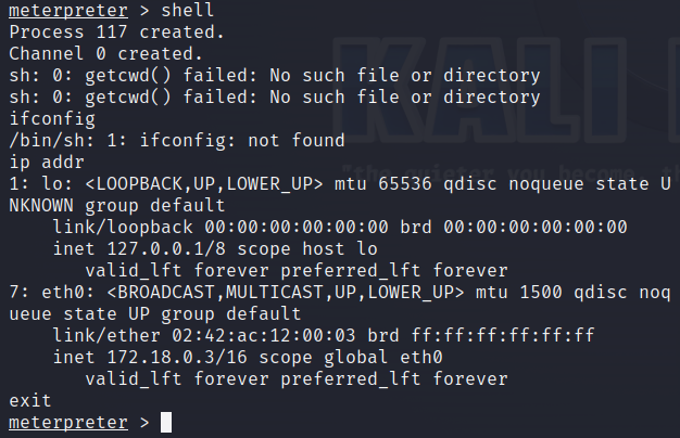 성공시, 자동으로 쉘로 접속하는 것을 확인할 수 있다.