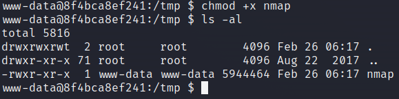 nmap 패키지(https://github.com/andrew-d/static-binaries/blob/master/binaries/linux/x86_64/nmap)를 업로드한다.